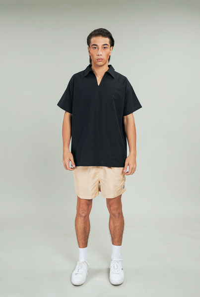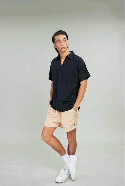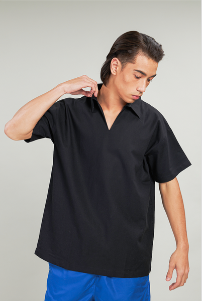 Black V-Neck Linen Top
